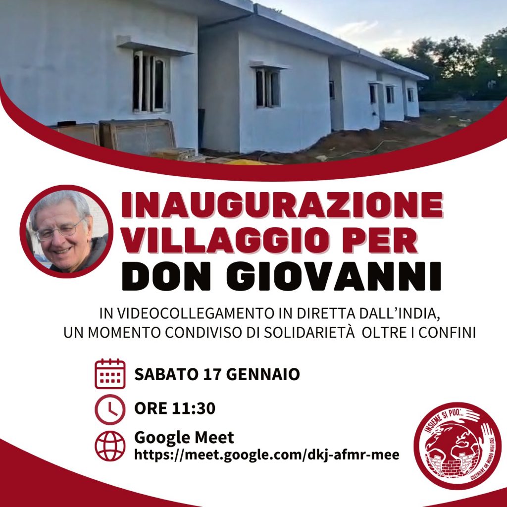 Insieme a lui e alle tante persone che, mese dopo mese, hanno creduto e contribuito alla realizzazione di questo progetto, domani, sabato 17 gennaio, alle 11.30, inaugureremo il Villaggio di Don Giovanni.