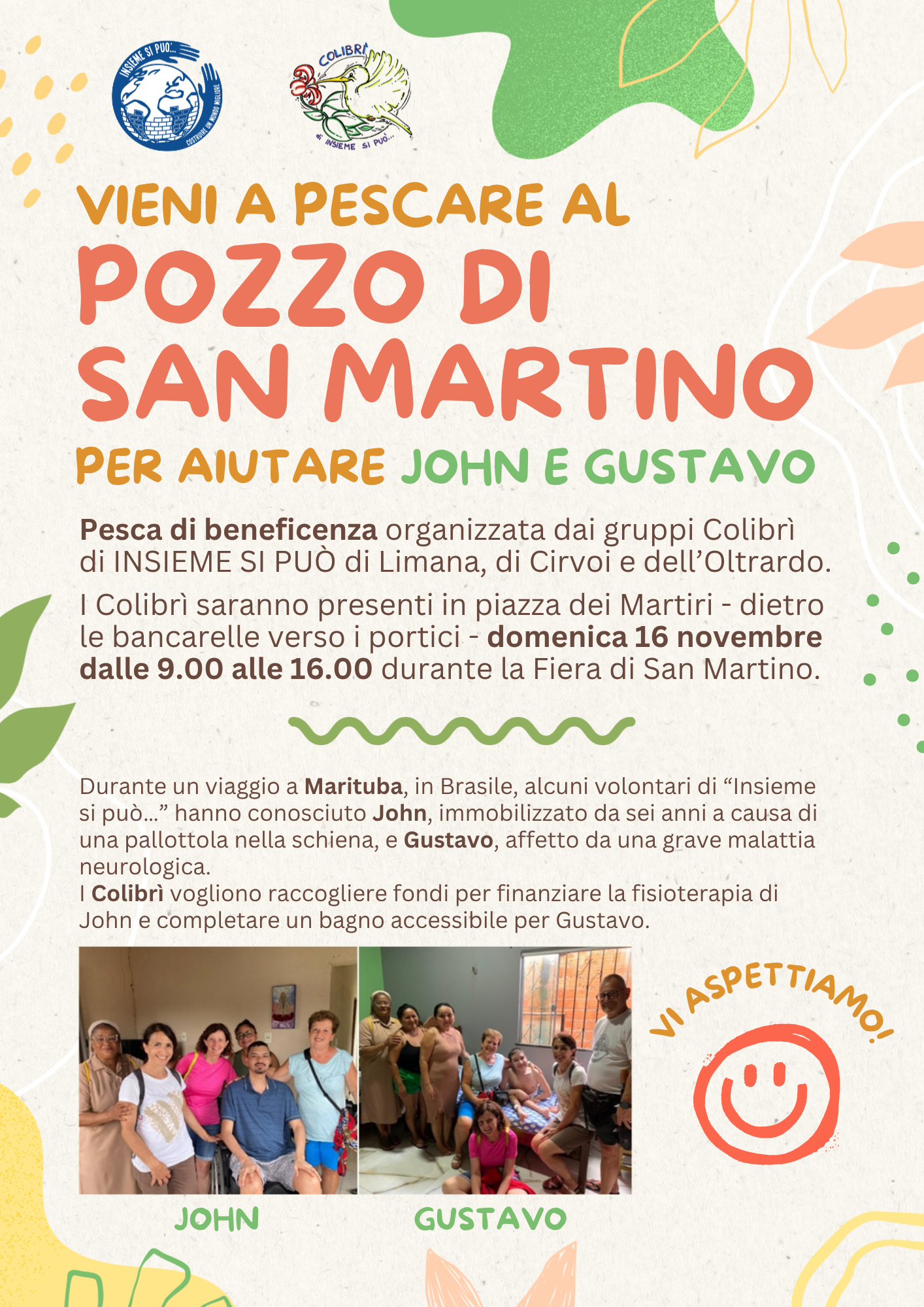 DOMENICA 16 NOVEMBRE saremo presenti nel centro storico di Belluno con tre belle occasioni di solidarietà: le squisite torte e i deliziosi biscotti del Gruppo ISP di Cusighe a sostegno dei rifugiati venezuelani in Perù, per garantire accoglienza, cure e assistenza; mercatino di artigianato equo-solidale da tutto il mondo con tante idee per il Natale; i Colibrì con il Pozzo di San Martino della pesca di beneficienza a sostegno di John immobilizzato da sei anni a causa di una pallottola nella schiena e Gustavo, affetto da una grave malattia neurologica, due ragazzi incontrati dai nostri volontari in Brasile, a Marituba.